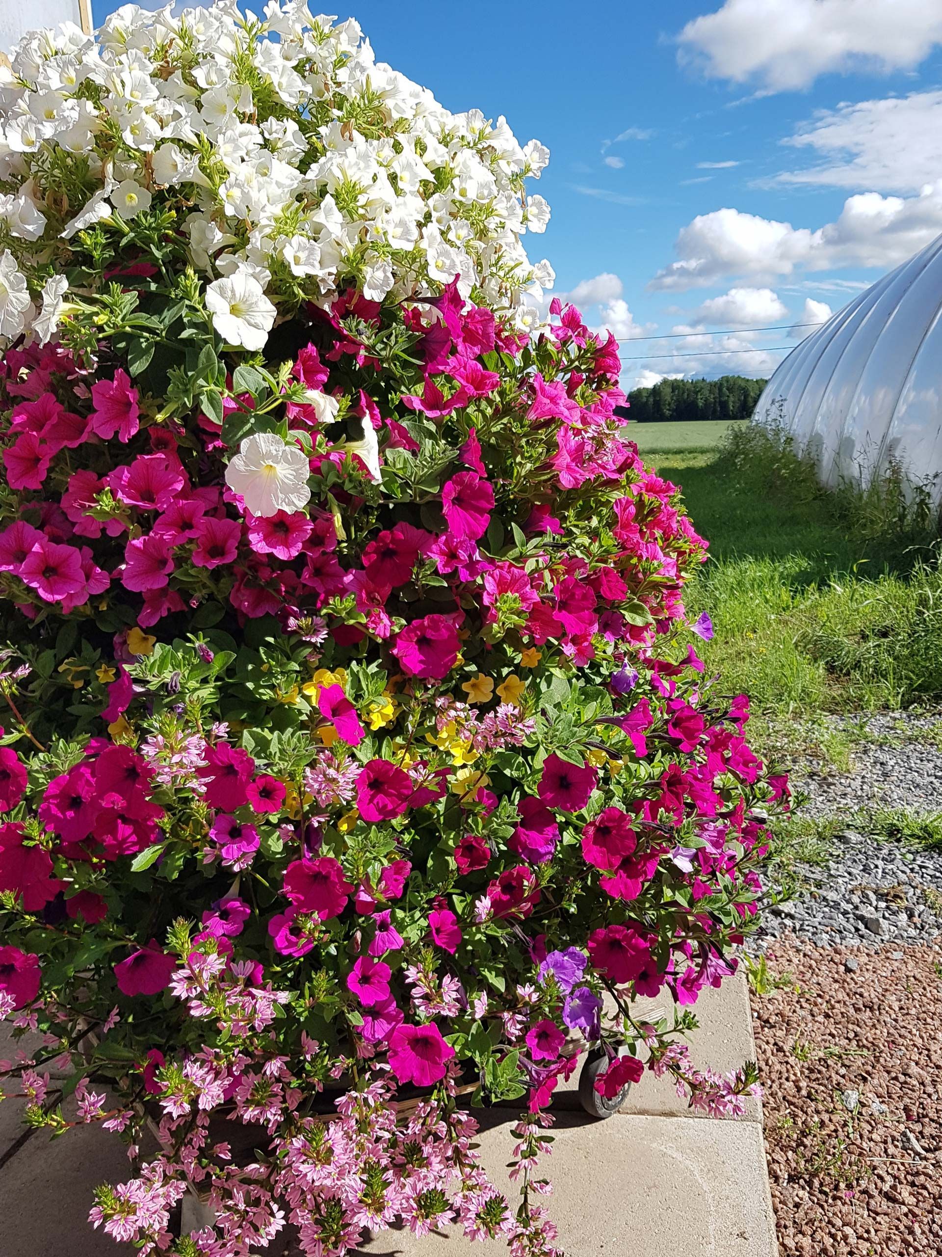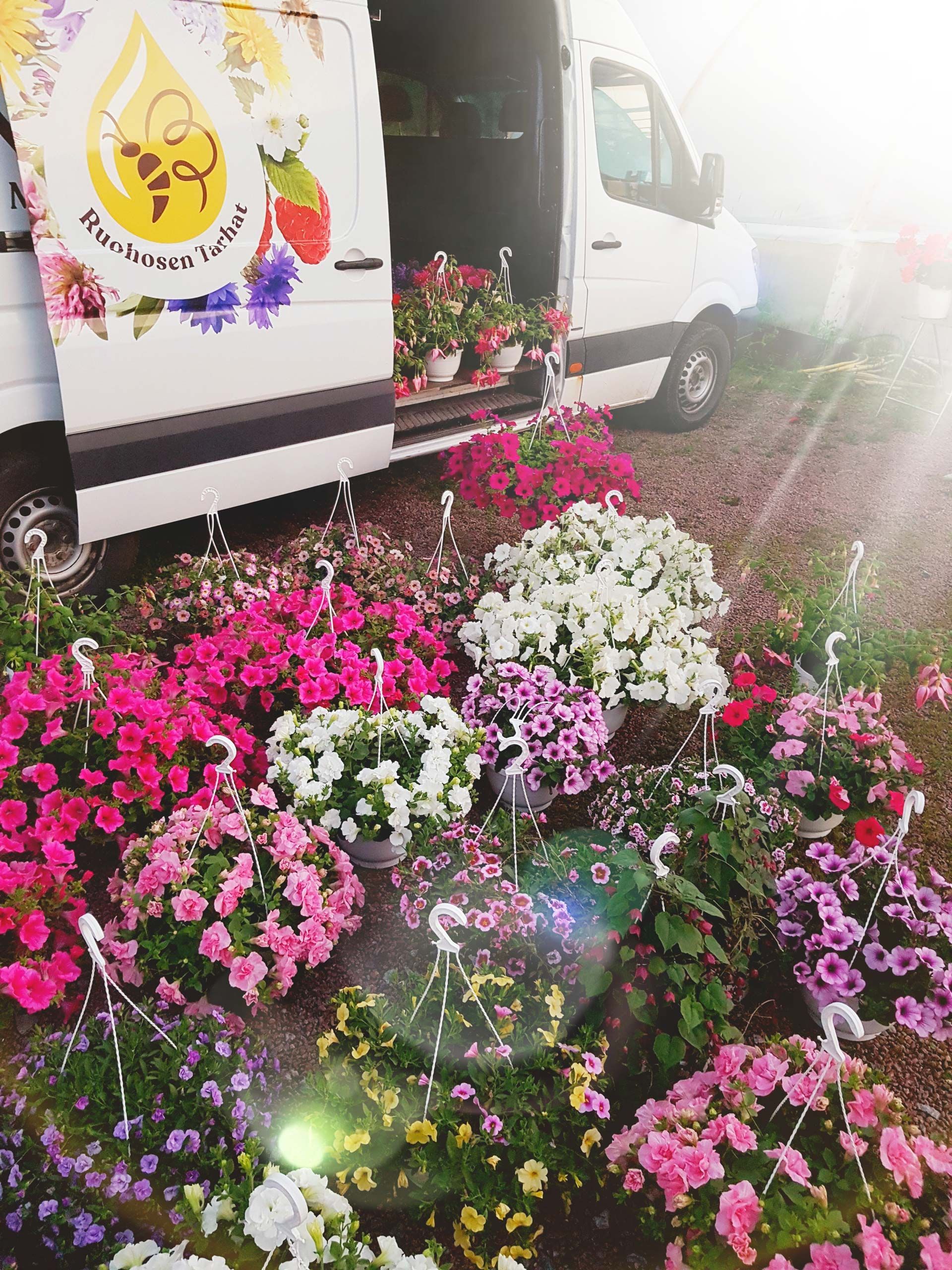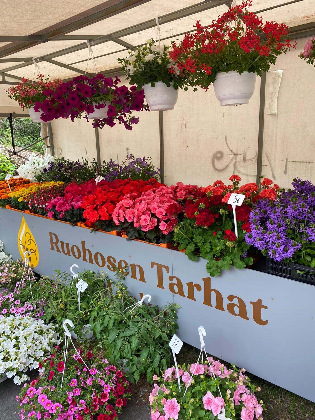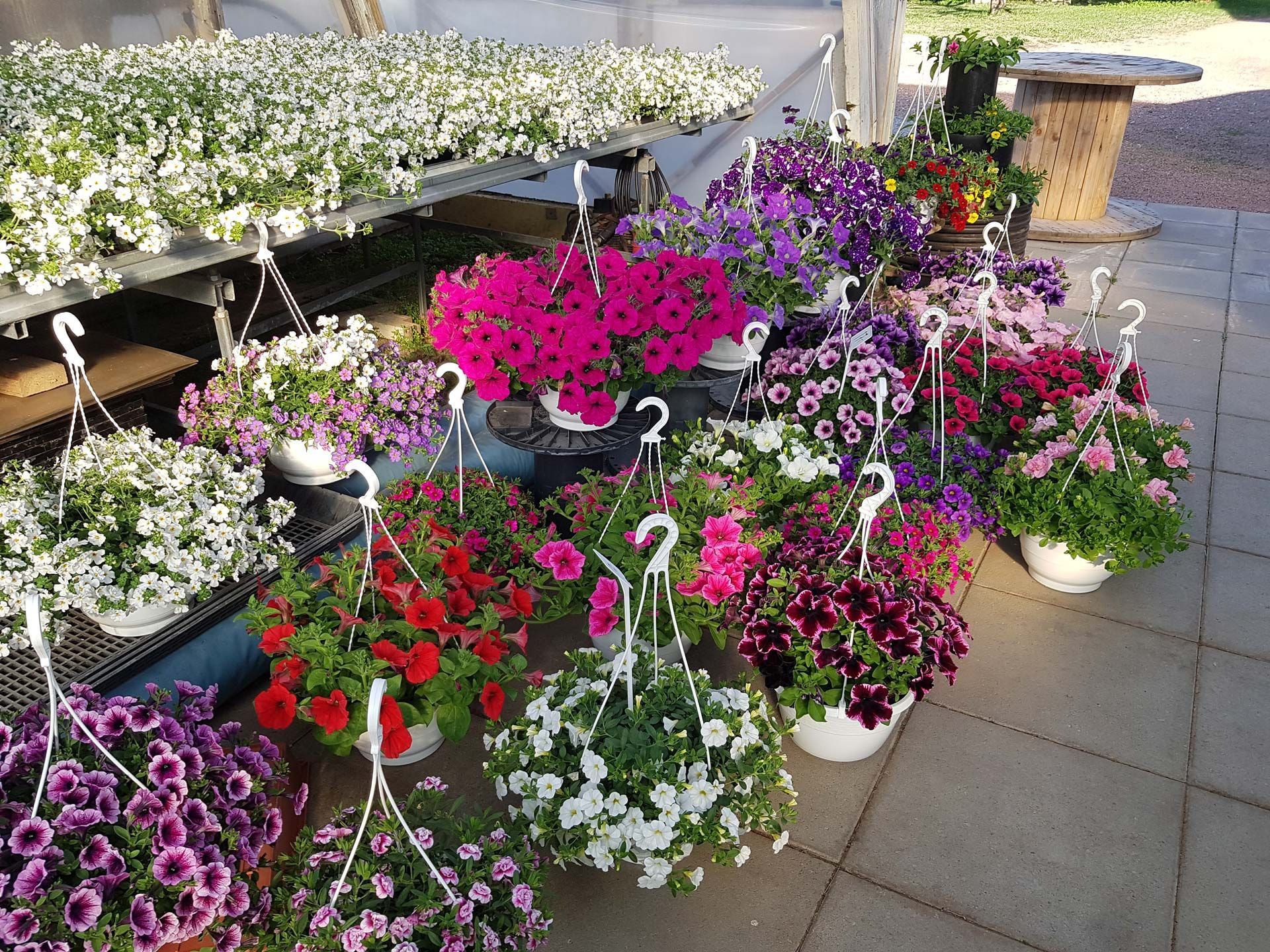 Kasvatamme itse monia suosituimmista kesäkukista, kuten pelargonioita, petunioita, orvokkeja ja samettikukkia. Lisäksi myymme kukkaeriä myös muilta kasvattajilta. Mukaasi voit poimia niin amppeleita ja ruukkukukkia kuin kukkapenkin kaunistajia. Autamme sinua ilomielin valinnoissasi ja annamme tarvittaessa hyviksi havaittuja hoito-ohjeita.